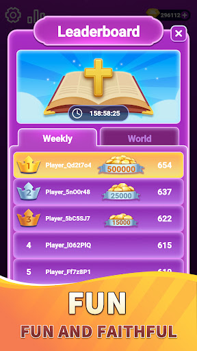 انضم إلى مسابقة مسابقة التفاهات العالمية وشاهد من يبرز في تفاهات الكتاب المقدس! اجمع الإيمان من خلال الإجابة على الأسئلة وتسلق لوحة المتصدرين العالمية. تحدى نفسك باستمرار، وحسّن تصنيفك، وكن واحدًا من أفضل خبراء معرفة الكتاب المقدس في العالم!